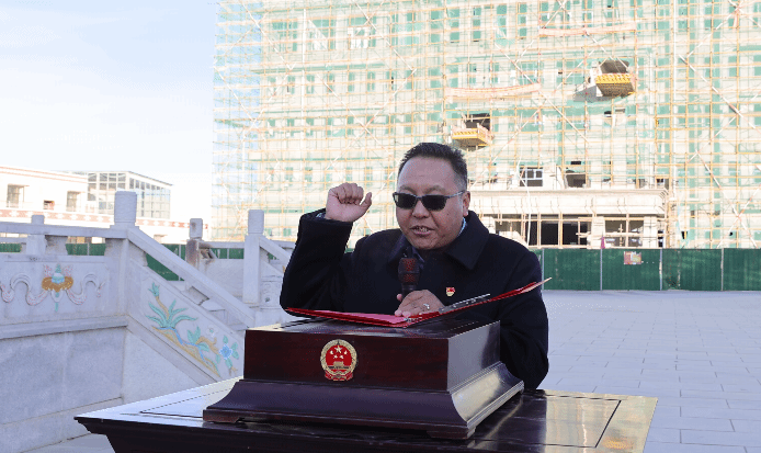 县政府副县长洛桑群培担任领誓人。全体人员面向国旗、高举右拳,声音洪亮、字字千钧:“我宣誓:忠于中华人民共和国宪法,维护宪法权威,履行法定职责……”铿锵誓词回荡在古格大地,既是对初心使命的再叩问,更是对法治信仰的再淬炼。